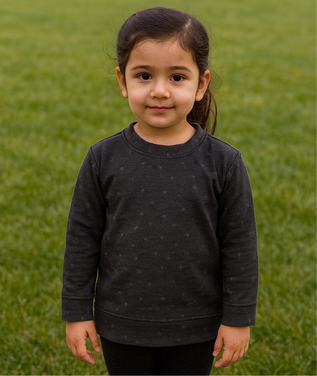 This cute kids' sweatshirt is made in a soft, cotton-rich material that'll keep them comfy all day, All of the cotton for this clothing is sustainably sourced and always will be. Round neck sweatshirt with long sleeves | Pull-Over. Ribbed Cuffs and Hem. "Phoenix" Print On Front. Skin Friendly Fabric | Soft Finishing. Fabric
